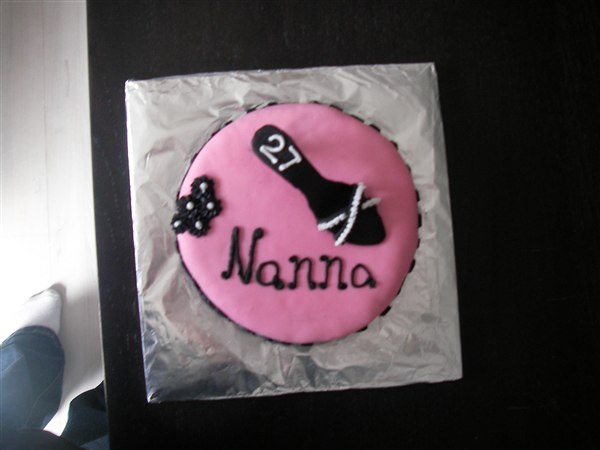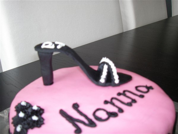 kagen er med chokoladebunde og mørk chokoladecreme, fondant og sko af MMF