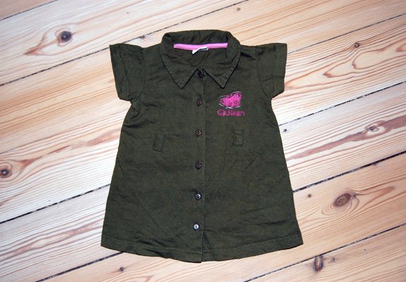 12. armygrøn skjortekjole / little girl star (str 68) 20 kr – bælte medfølger!