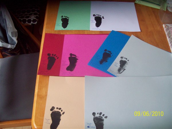 Jeg har også fået lavet lidt af julegaverne fra børnene til moster, farbror, farmor, farfar, morfar og mormor. Fodaftryk fra Julius, fod-/håndaftryk fra Cassandra. Hun var så dygtig. Jeg ved bare ikk mere hvad der skal på.