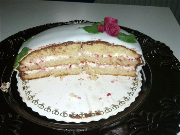 Jeg fik lige bagt kage på grillen i går for første gang, drømmekage. Det blev ret godt, så ville jeg også prøve at lave roser for første gang, det synes jeg også gik ret godt (hvis jeg selv skal sige det, hi hi). Så skulle jeg prøve at lave en hindbærmousse med frysetørrede hindbær, det smagte godt. Så kagen med på job og faddet blev bare ryddet, så de kunne godt lide den mousse.