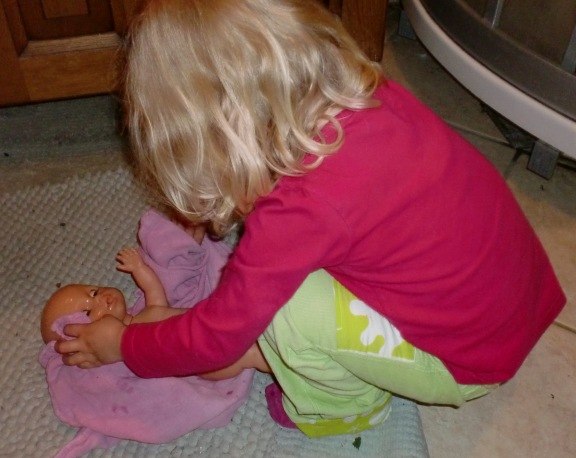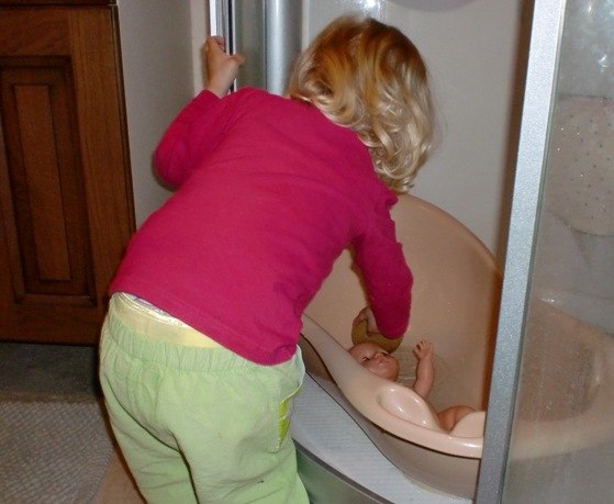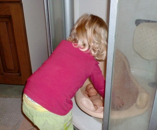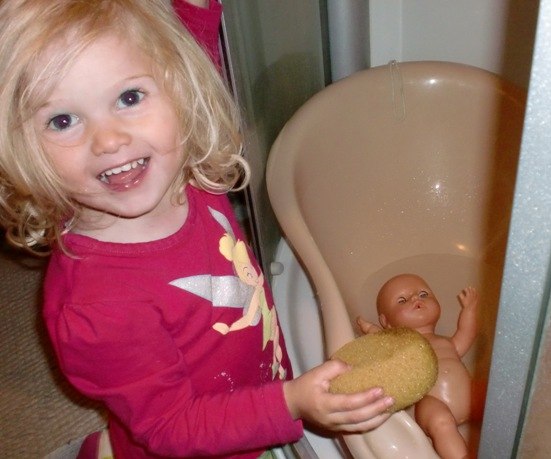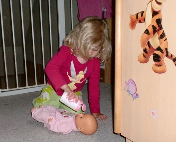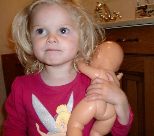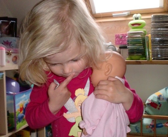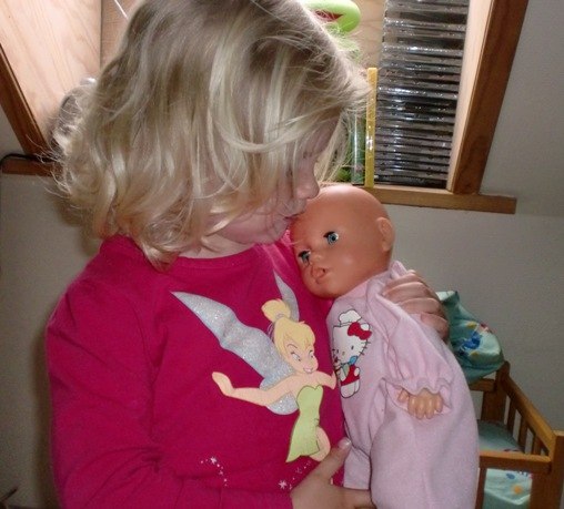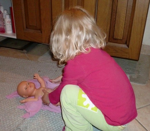 Alle de andre er fra idag (lige inden aftensmaden), hvor Bianca passede og plejede sin baby-dukke kærligt. Den fik bad,blev tørret, fik mad og tør ble, og blev puttet ...og så kastede den op og blev trøstet og fik skiftet tøj