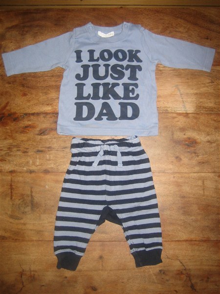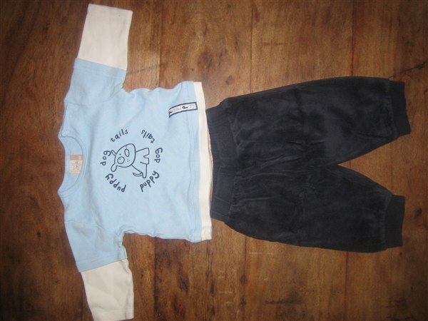 9. Bluse og bukser fra H & M (mærket med mk i nakken) str 62. Pris 20 kr.