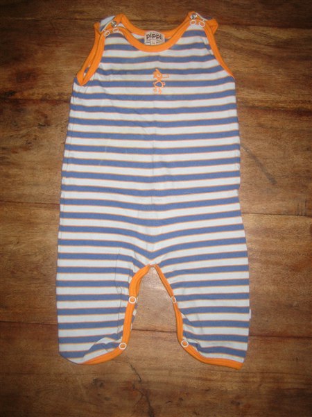 10: Buksedragt fra Pippi (mærket med mk i nakken)str. 56 pris 20 kr.