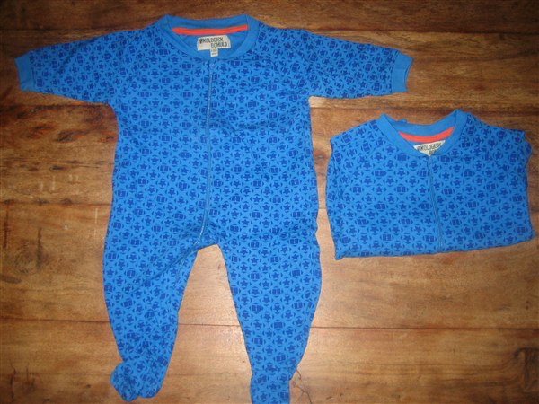 13: 2 stk natdraget i økologisk bomuld str. 68. Pris 30 kr.