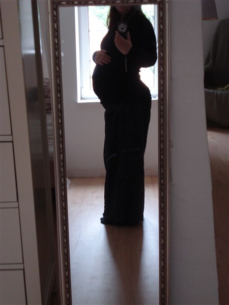 der er dog hverken linea negra'er eller udpoppede navler her, men for søren det er svært at nå benene ordentlig (fx i badet) og igår måttee Søren undersøge en rift jeg havde fået på den ene skamlæbe fordi jeg overhovedet slet ikke selv kan se dernede længere (det blev naturligvis gjort med lommelygte og det hele