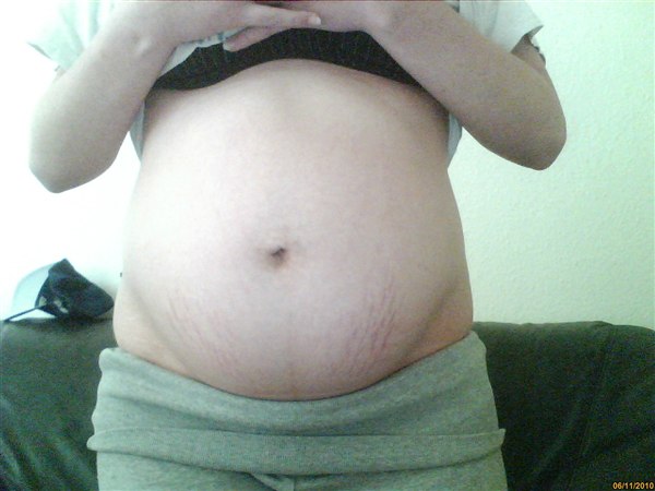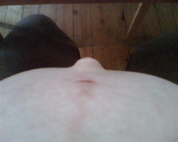 Nej den ændrede sig slet ikke, den vendte indad hele tiden og ændrede sig slet ikke:0) Min køre kæreste sagde hele tiden - eeej nu begynder den nok snart at blive mindre og måske bule ud af - nej sagde jeg det gør det ikke:0)