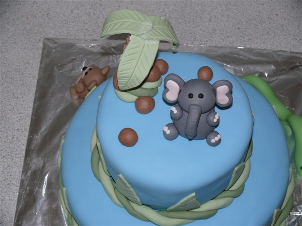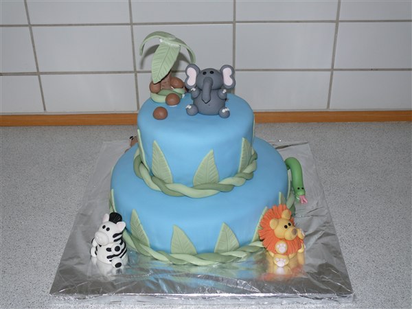 Junglekagen er til en navngivningsfest så den sku være meget anderledes kage end de traditionelle barnedåbskager og så skulle der på en eller anden måde indgå en slange