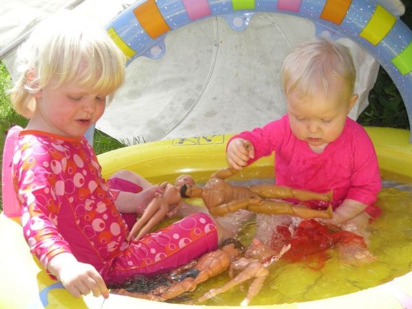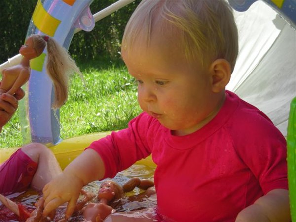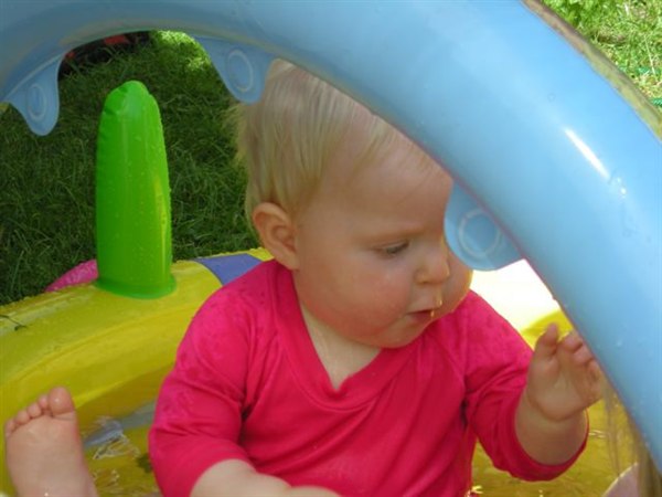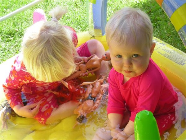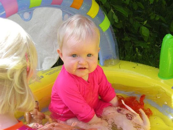 Anna-jonas skriver: Sidste weekend var det sommer i vores have...................og pigerne fik den lille babypool ud, og det gav en fornøjelig stund for både forældre og børn.