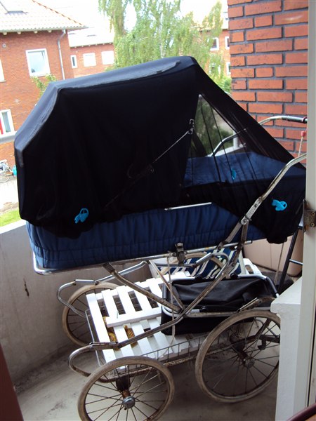 Som altan barnevogn har vi en ældgammel odder som nok er over 20 år gammel. Men den er lækker, har ikke de dumme runde ovale hjørner som de nye har. Og så er den bred tilmed...