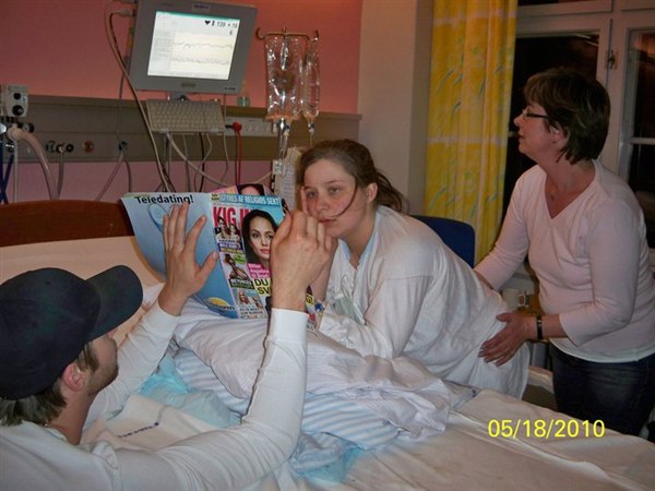 Jeg var jo indlagt samme dag jeg fødte, men det var fordi jeg ikke havde sovet i flere dage, også kom min mor og hendes mand om aftenen, en time inden vandet gik - og hun havde købt det med, så jeg fandt mig lige tid til at læse det midt i hele ræset
