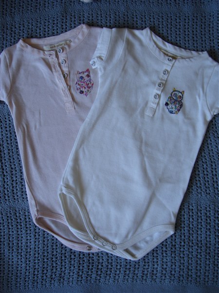 Billede 4: To skønne body'er fra Soft gallery med broderet ugler i str. 3 måender.