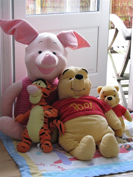 Olivia bliver 17 mdr. i dag og elsker Peter Plys.. Så mon ikke de bliver et hit når jeg henter hende lige om lidt og mon ikke den nye lille der kommer om præcis en måned i dag vil elske dem også