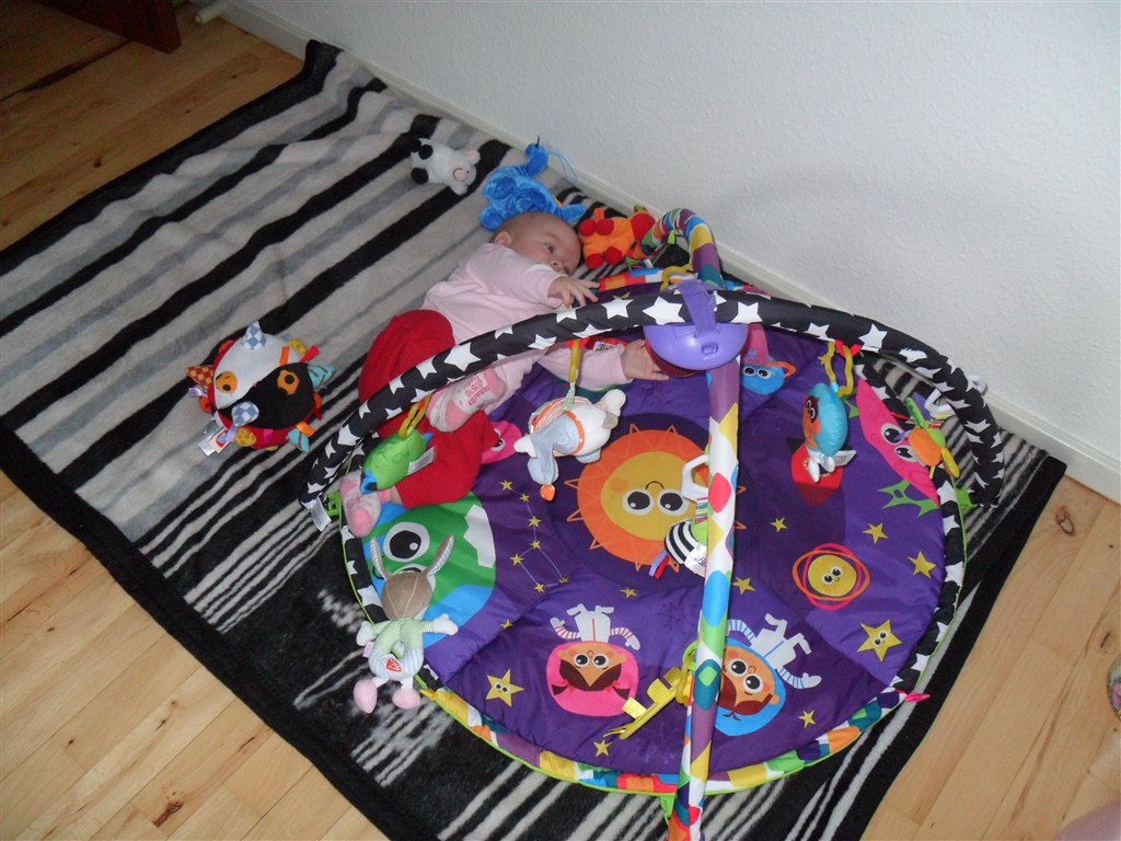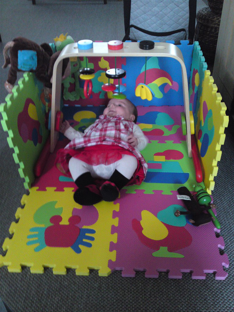 Og lige nu, hvor han er blevet 1 år, har vi taget "stængerne" af og bruger "bunden" til at have 100 plastikbolde til at ligge deri