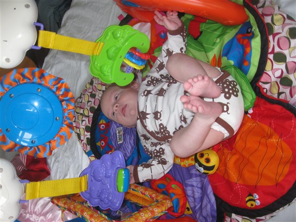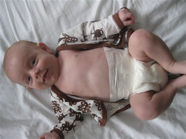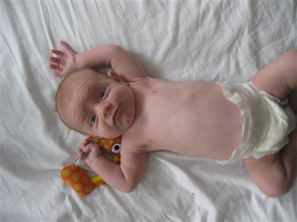 Da han blev født var han 52 cm og vejede 3480 --> Nu er han er 60 cm og vejer 5,3
