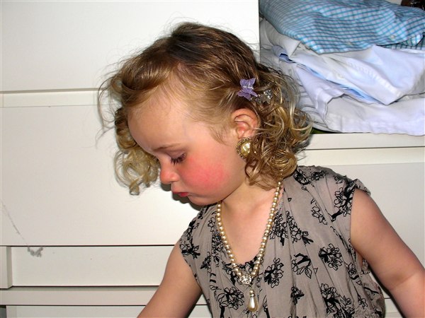 Liva havde gang i mors høje sko, kjole og smykker igår Må lige dele et par billeder med jer.