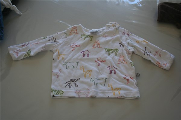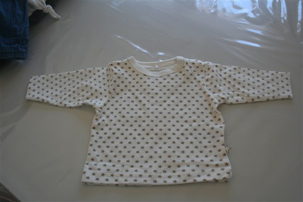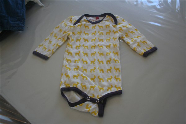 12. hjort body str. 0-3 md. (stor) 20kr.