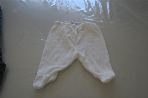 11. hvide velour bukser med fødder. str. 56 5 kr.