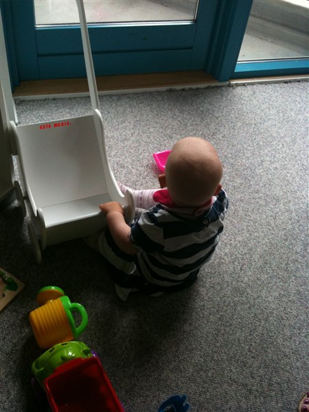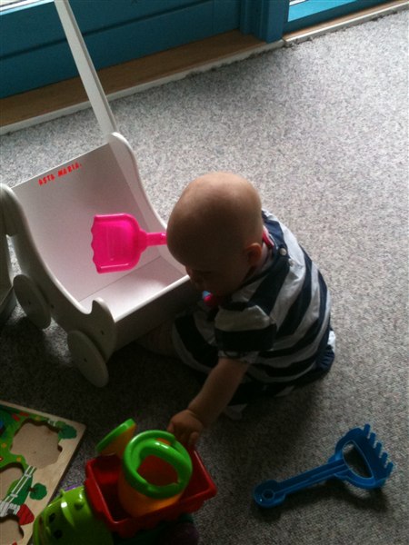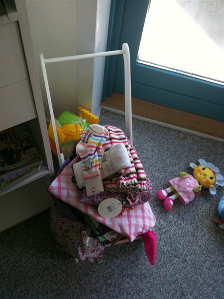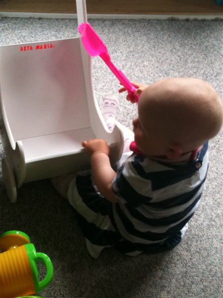 Den hvide gåvogn har vi også, og bliver nødt til at spørge, tipper hun med den? Syntes nemlig den virker meget let..