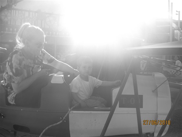 Rasmus Klump var der også, men vi fik ikke et billede, fordi min Søn selvfølgelig var møg bange for den kæmpe bjorn der gik der, han var ved at kravle ind i klapvognens baggage pose neden under klapvognen og han rystede som om han havde set et spøgelse.. Og nu er det ikk fordi Rasmus klump er fremmede, han har en kæmpe bamse hans far vandt til ham sidst vi var i tivoli og den skal han gerne kysse et par gange om ugen, men i den stooore version så går den ikk! Bangebuks!!