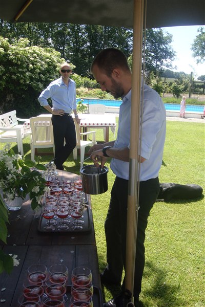 Vi lavede det hele selv (velkomstdrinks, frokostbuffet og kaffe/muffin bord) og sparede nok en masse penge... men nøj hvor var det et par hårde og stressende dage op til. - Heldigvis var det en fantastisk dag så det opvejer lidt :-)
