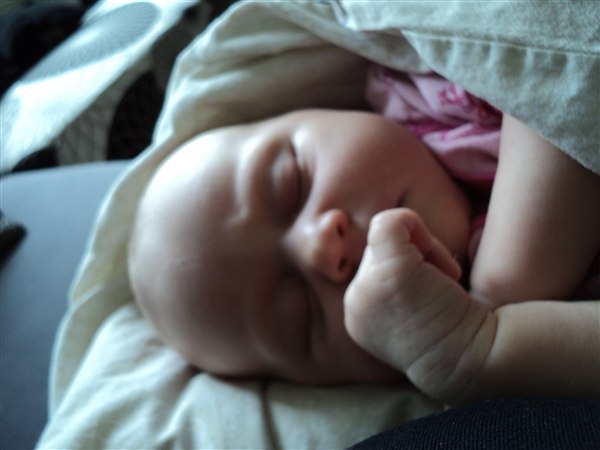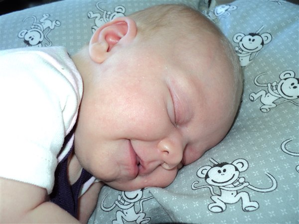 hvor er hun sød, det første billede er især dejligt Det er skønt når de ligger og smiler i søvne!
