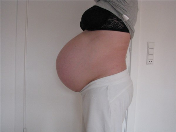 Synes selv den er ekstremt stor i forhold til min højde på 1,57. Vægten har stået mere eller mindre stille siden uge 32+1 - 1 kg har jeg taget på trods væske i kroppen..