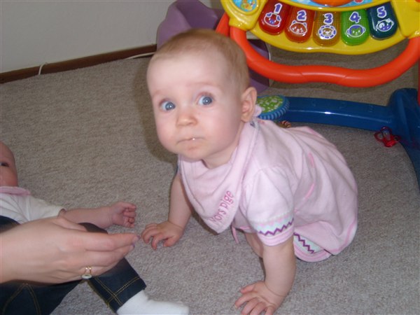 zoey er næsten 8 måneder. forstå det ikke.. hun er jo bare min lille baby.. min lille bitte baby... kan næsten tude over hvor stærkt det går.. hun kan bare så meget nu.. og så er hun en balademager. det er helt vildt.. vi har fået os noget af en opgave. liam pillet ikke ved andet end hans legetøj. vi har aldrig flyttet noget for ham.. men hende her.. hun skal ha fat i alt. og bliver ved til hun har fået det. og hun er lyn hurtig.. hun nyder stadig at komme med til træning.. hun elsker at være midpunkt der oppe.. det er de samme der kommer hver dag så de skal jo altid lige snakke lidt med hende.. så det hyggeligt..