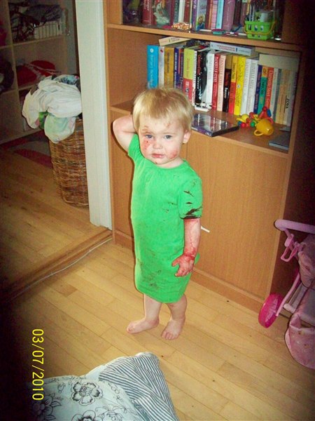 Tak, det er også et HELVEDE lige nu. Hun skriger til hun næsten ikk kan trække vejret når hun skal vaskes og smøres.