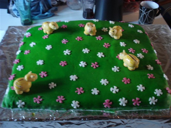 Og det blev selvfølgelig en Jersey-Ko-Kage, da vi var derude med Jersey køer. Min bradepande hælder og derfor blev der en fin bakke på den "grønne mark"