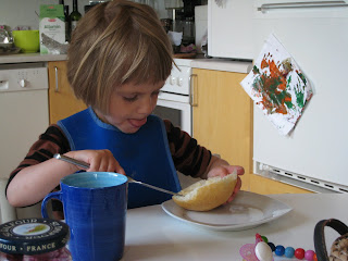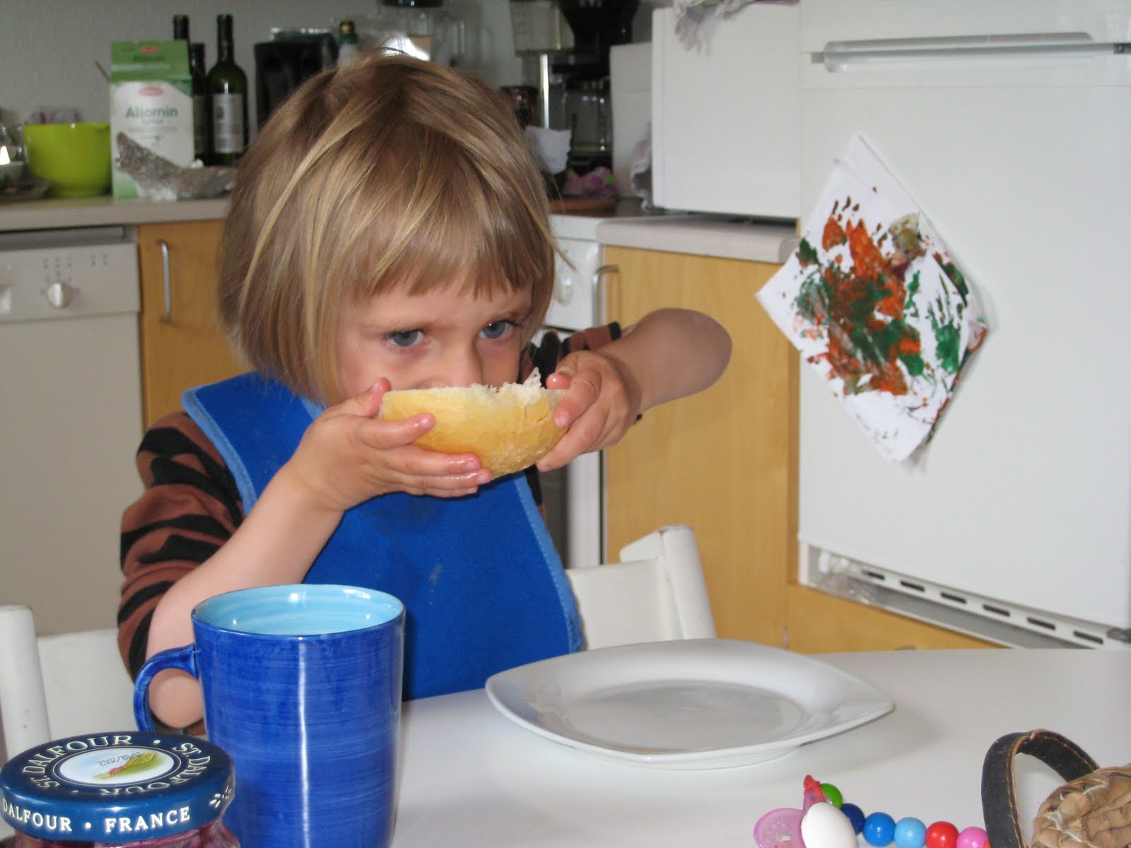 hun kan også selv smøre smør på sit brød...og forsøger at bruge kniv og gaffel