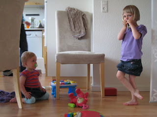 En anden ting, der virkelig gør moren glad er, at hun selv er begyndt at indlede lege med børn, hun ikke kender; børn på vejen og på legepladsen. Hun formår at skabe den sociale kontakt på en ikke-indtrængende måde, men på en behagelig og god måde. Det er tydeligt, at hun begynder at have styr på en del af de "sociale spilleregler"...og det gør mig SÅ glad, især taget i betragtning af, at hun jo starter i børnehave langt væk fra kendte omgivelser og personer... Det stikker mig stadig i hjertet, at hun snart skal sige farvel til alle sine gode venner i vuggestuen; børn som hun ELSKER og som hun er populær hos (ifølge pædagogerne