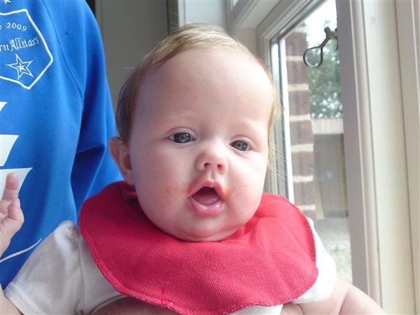 Vores sp var her forleden og jeg talte med hende omkring det med frugt osv! Hun sagde at vi faktisk gerne må begynde at give hende grød af forskellige frugter (hun nævnte så æbler, ferskner, pærer, jordbær osv) nu det går så godt med grøden...