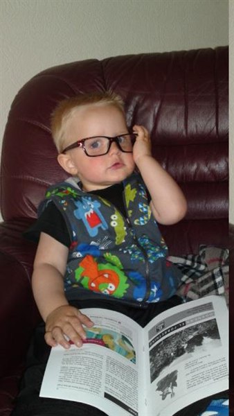 Hi hi hi sikken en fremmelig søn du har, der allerede læser avisen... Hvor ser han bare sød ud..