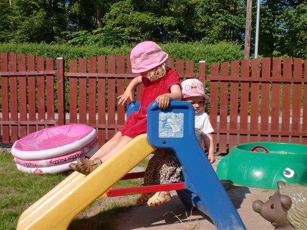 Her er en masse blandede af mine to. Fra igår da vi hyggede os i haven...