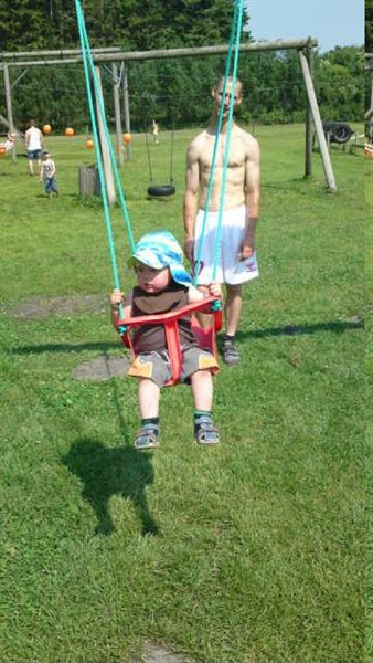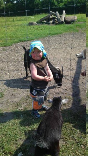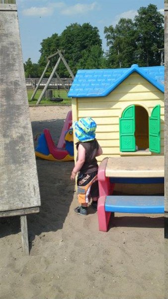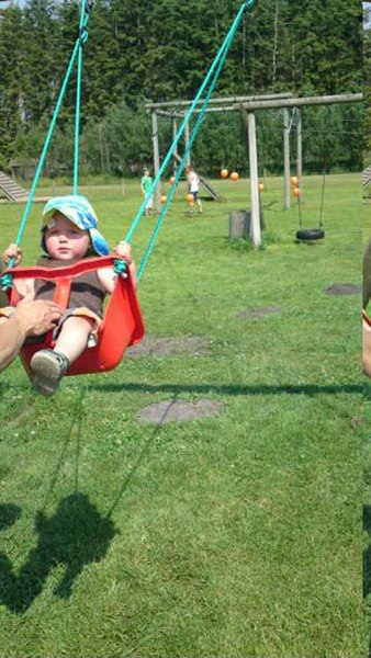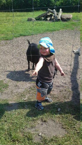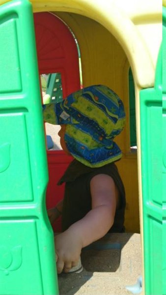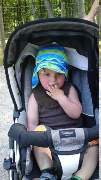 Mors dejlige dreng. Men højtepunktet for ham var nok legepladsen, hvor han fandt en pige at rende rundt og lege med, imens vi sad i skyggen og han nød bare at rende rundt. Og var flad af grin da en ged hoppede op i klapvogen