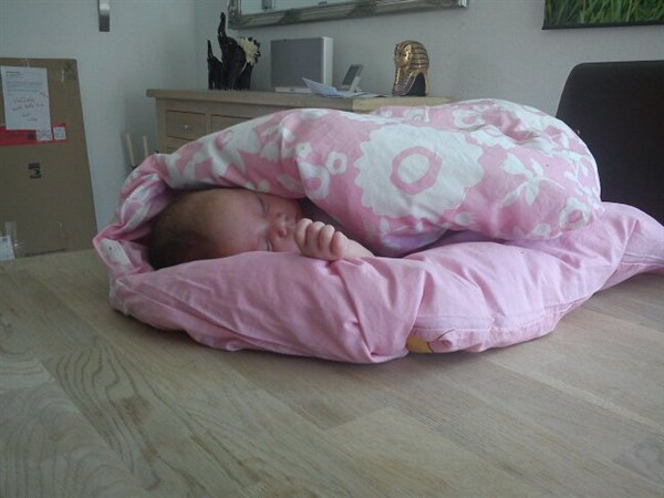 Hvor skønt...så kan det være at jeg også får det behageligt når hun sover oven på mig, den lille klister-medister