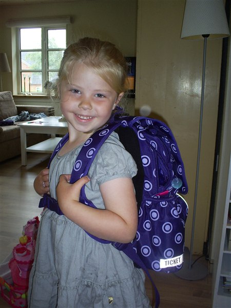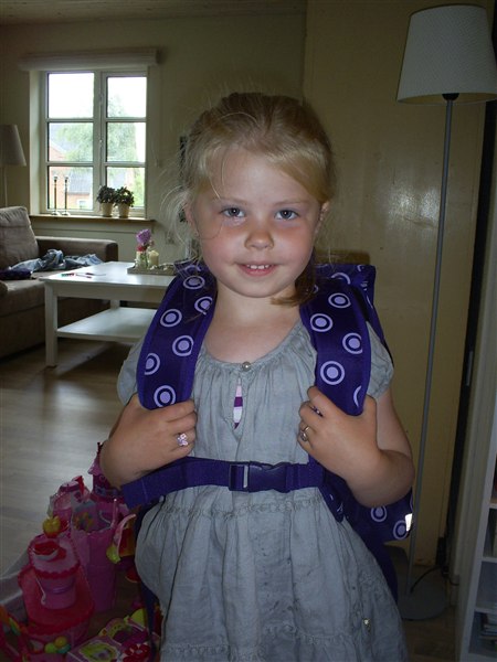 Ja, så fik vi købt skoletaske til Tilde. Det var godt nok stort. Tænk at min første fødte lige om lidt skal starte i skole.