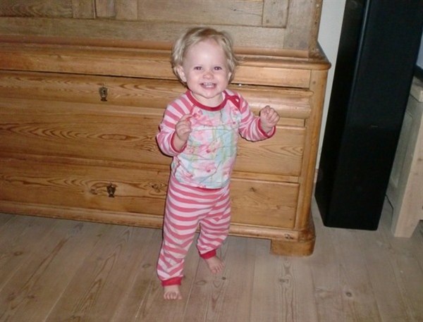 Jeg fik hende til at stå, hvilket hun jo rigtigt gjorde for første gang igår aftes.