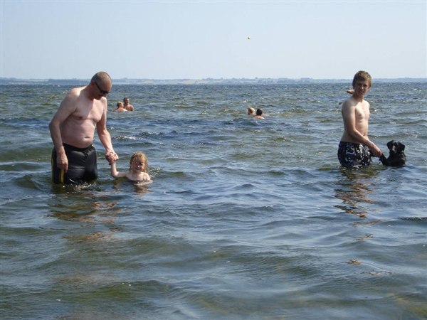Jeg er selv rædselsslagen for at bade ved stranden og det har hele mit liv været rigtig rigtig træls.... derfor har jeg sådan ønsket at Liva ville lære at det slet ikke er farligt og Carsten har prøvet at have hende med ud i vandet da hun var mindre... det var hun ikke så vild med.
