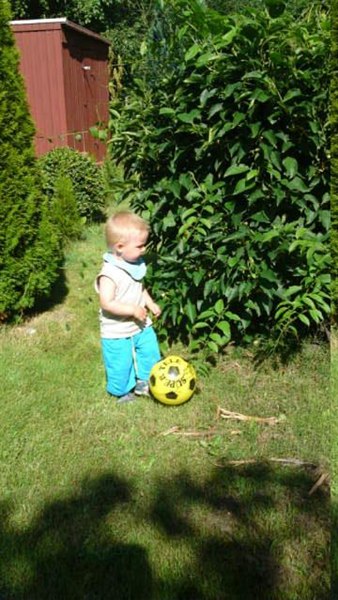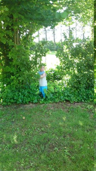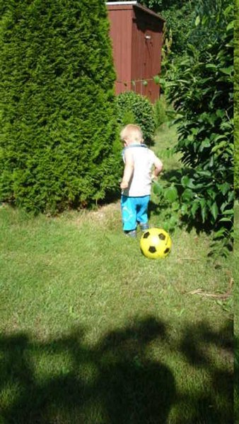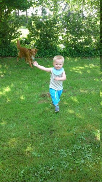 Og han nød rigtig den store have, og hunden, selvom de måtte skilles ad et par gange.