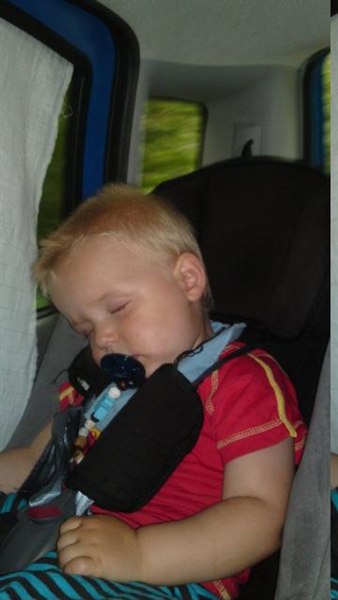 Emil råhyggede rigtigt, og gik kold på bagsædet næsten med det samme vi vendte snuden hjem af.