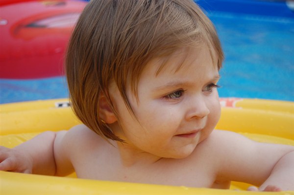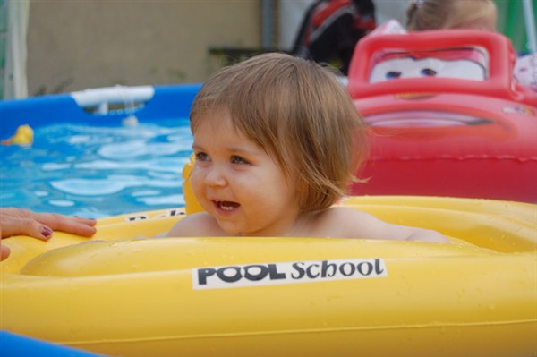 vi var til fødselsdagsfest i går og bille fik sig en dukkert – og elskede det. sjældent har jeg set hende se så tilbagelænet og selvtilfreds ud