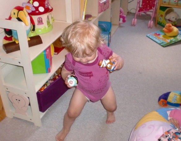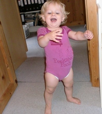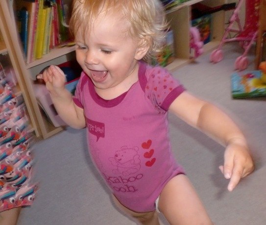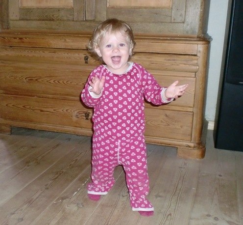Idag har Celina taget maaange skridt ad gangen. Hvad der er 2 meter for os voksne, er jo mange skridt for sådan et par små begynder-gående børne-ben. Hun er blevet meget mere modig og vovet - og hele tiden!