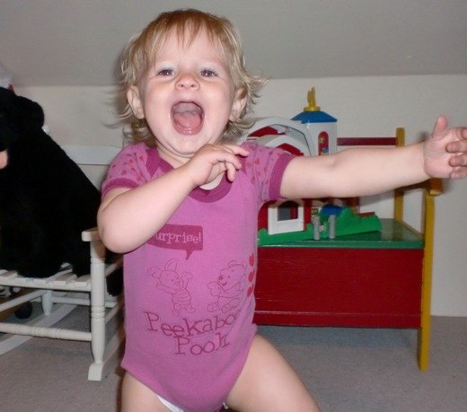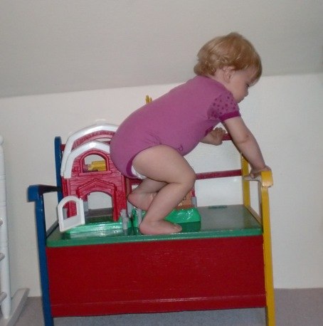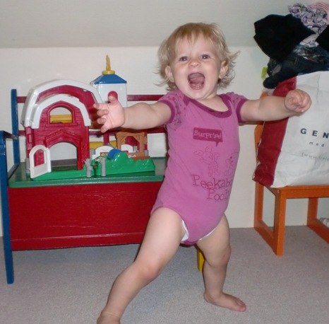 Det giver selvfølgelig også en del hårde bump på rumpetten, lidt dunk og slag i hovedet, og nogle skrammer her og dér ...lidt hudafskrabninger i hænderne, når hun falder udenfor, osv.