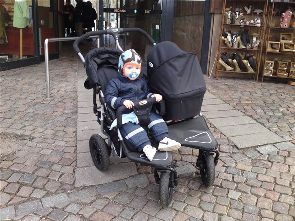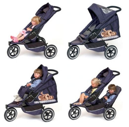 Den er god da børnene kan sidde ved siden af hinanden og man kan lægge sæderne helt ned hver for sig - så hvis den ene er træt kan denne sove og den anden sidde. Vi har købt en blød babylift som ligger i den ene side akkurat som en barnevognskaleche og så sidder vores "store" pige i den anden side... Fungerer rigtig godt og vi er glade for den.