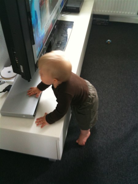 Jaaahhh lige en stolt mor som lige ville vise hvad hendes lille dreng kan Han kan dog ikke kravle (kun mave sig meget hurtigt alle mulige sjove steder hen) eller gå