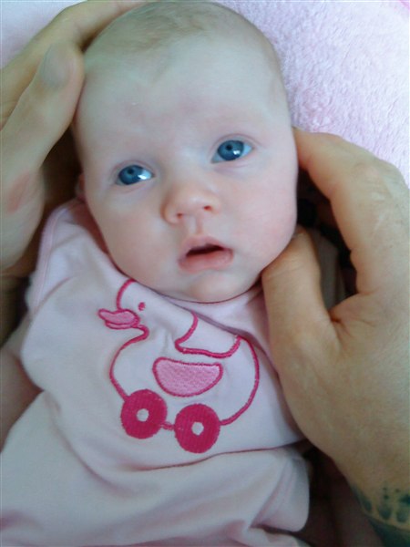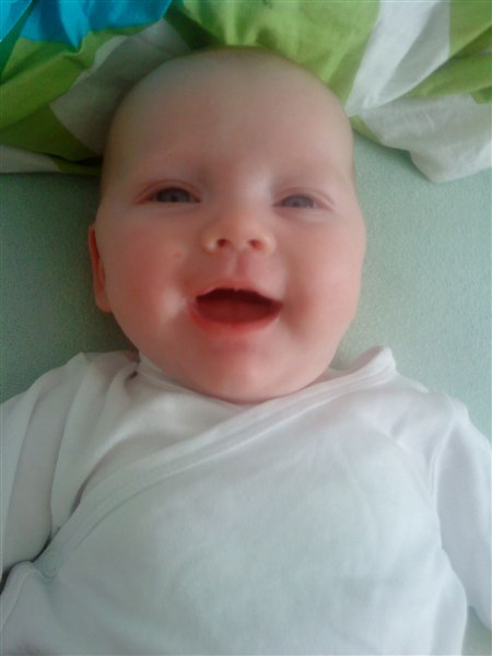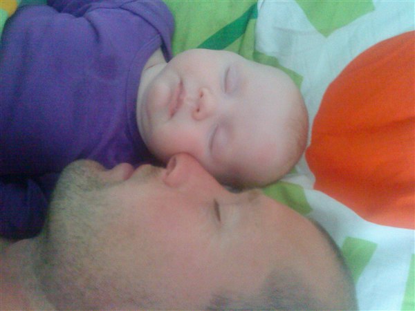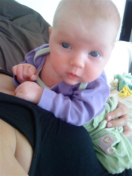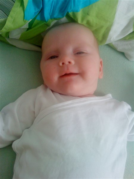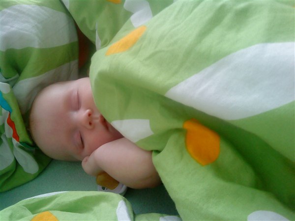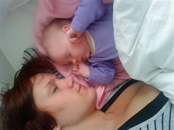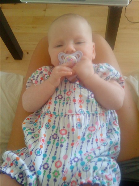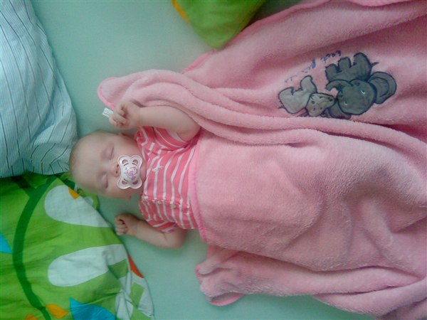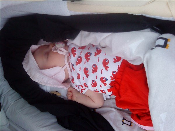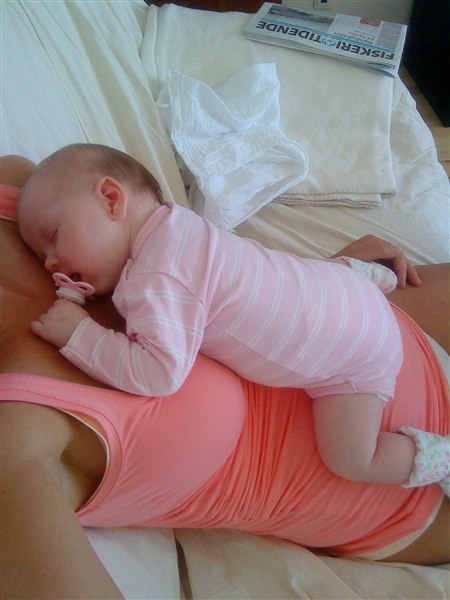 Om natten sover hun fra 22.30/23.00 til 6.00/7.00 og så igen en time efter hun har spist. En lille lur til middag også, med mindre vi går med barnevogn eller kører bil, så sover hun også