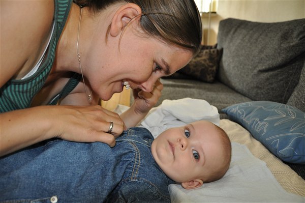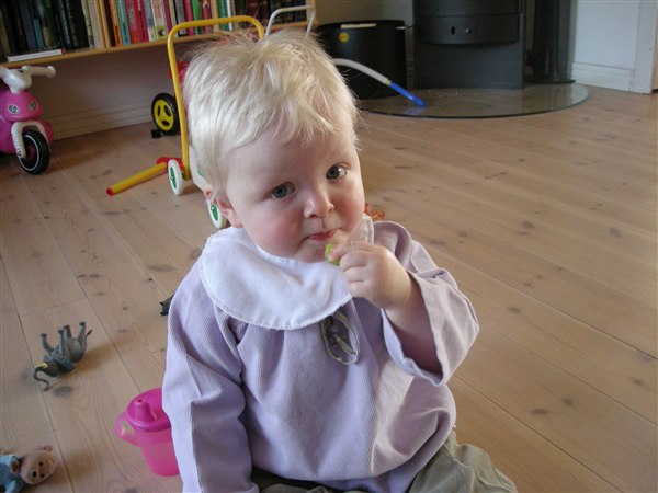 De har dine øjne, og Jans træk rundt om munden. Men her på billederne ser det ud til at både Jan og du er lyse... Så mon ikke det er en kombi fra jer begge?