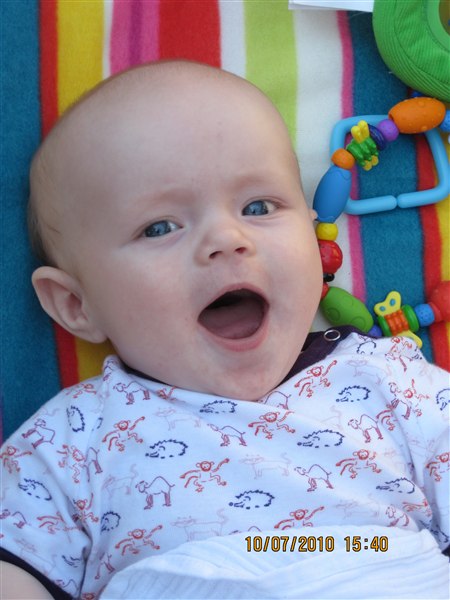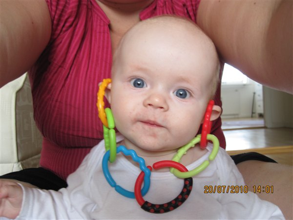 åhh tak søde Dorthe. ja hun har det kæreste lille fjæs, og hun er begyndt at synge idag uhhhhhhh siger hun og kigger op på stereoanlægget og så griner hun til mig, som om jeg skal tænde. og hun fortæller mig meget lange historier og skælder mig sågar ud indimellem. Det er bare så skægt, du har så meget at glæde dig til.