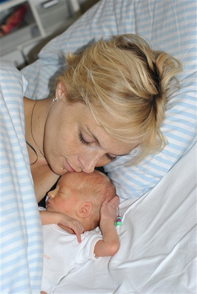Her er et af mig og den ene af mine tvillingedrenge ca en uges tid efter de blev født. Vi er stadig indlagt på det tidspunkt og har lige en lille hyggestund.